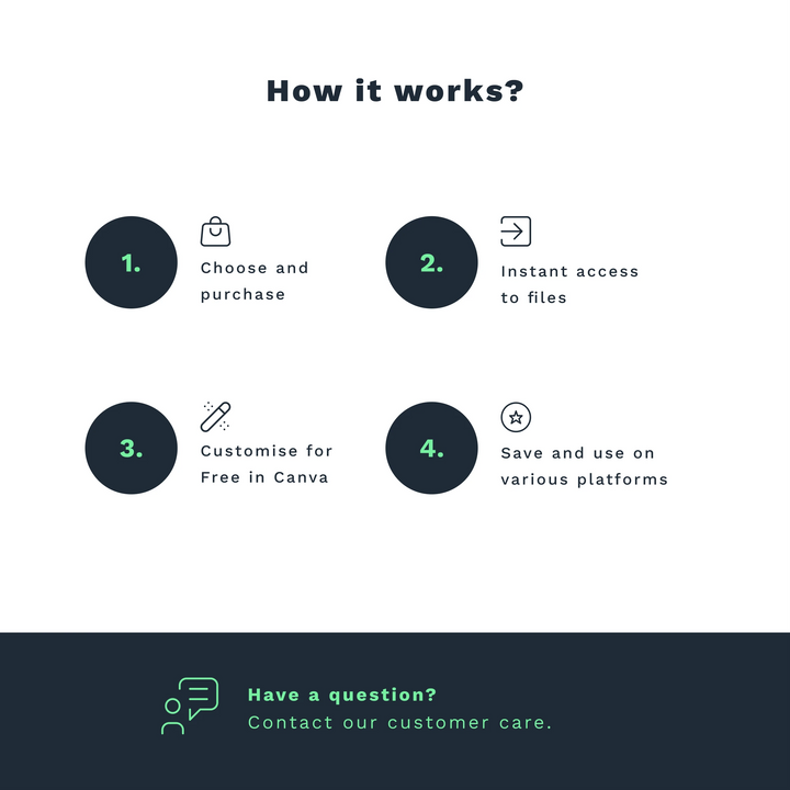 After purchasing you instantly get the link to access the template in Canva, along with simple instructions for editing. Just click on the link, and you'll jump straight into your Canva template. Simply select any element to adjust its color, import photo, or change the text.