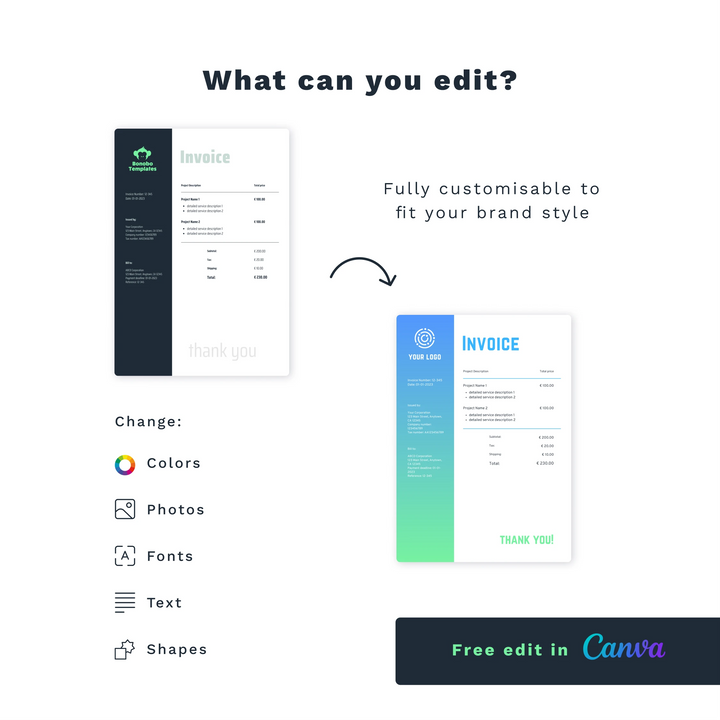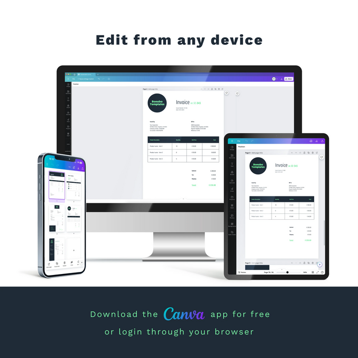 Bonobo Templates are easily editable with the free version of Canva. Detailed instructions on how to edit in Canva are included.